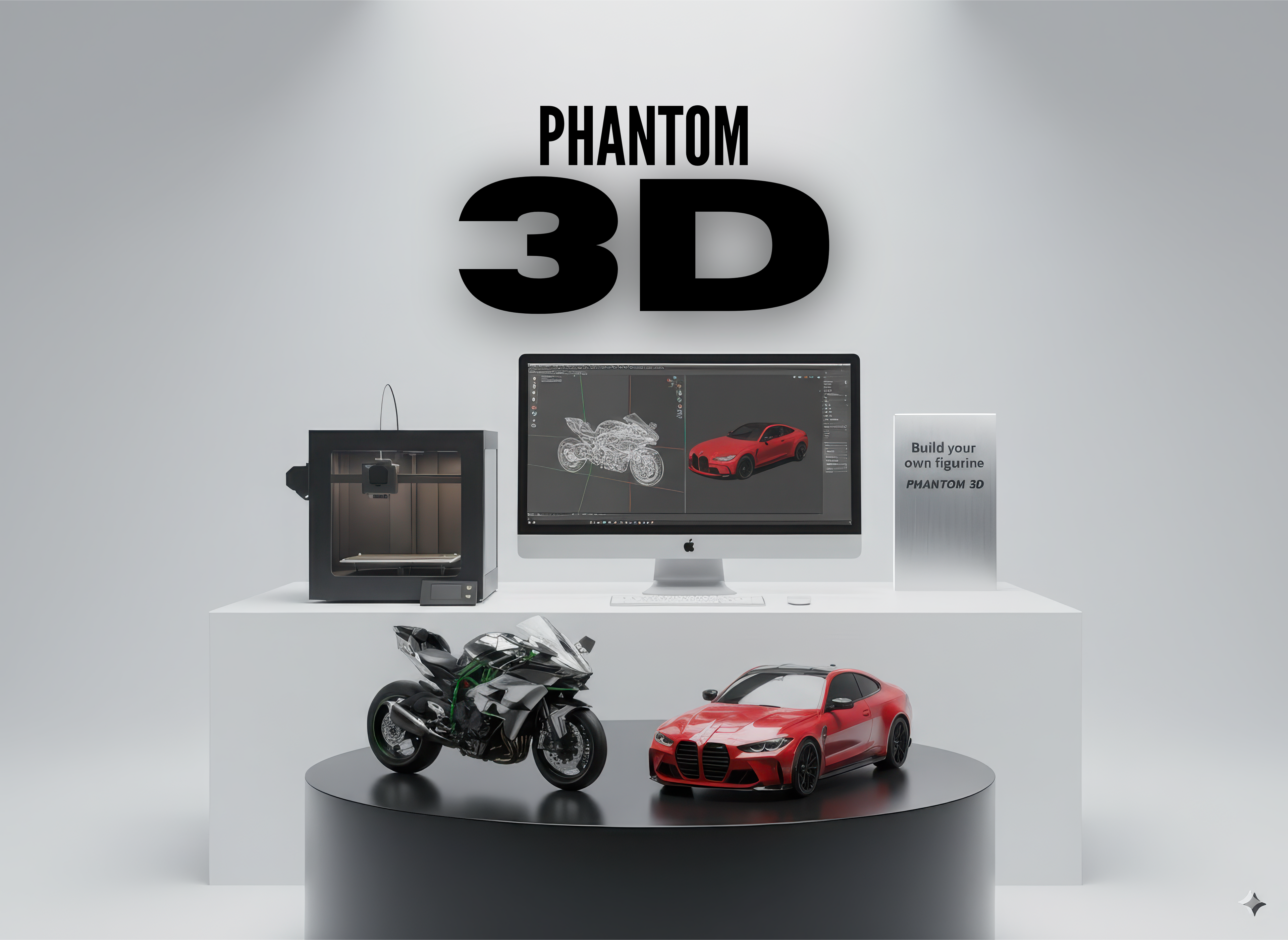 Turn your motorcycle or car into a unique, high-precision 3D figurine.